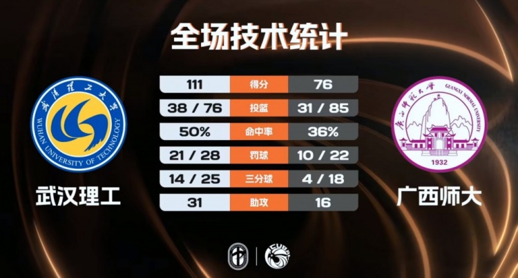 直播吧4月23日讯 CUBAL一级联赛西南赛区,武汉理工今日对阵广西师大。比赛上来,武汉理工先拿4分抢下开局,广西师大追平后又被武汉理工
